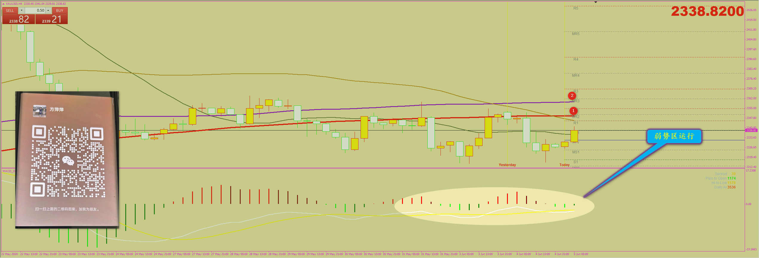 通过对黄金小时图解析得知,黄金从早盘继续向上反弹运行,预计又是和星期一一样到达2350上方,短期我们从下方的ACD可以清楚的看到依然是在零轴下方运行上方依然受制于12号的压力,毕竟短期大周期均线压力比较大一点,早盘就已经说过一旦站上2345上方行情将会继续加速拉升,本周有非农数据所有动作都是为非农行情做准备,