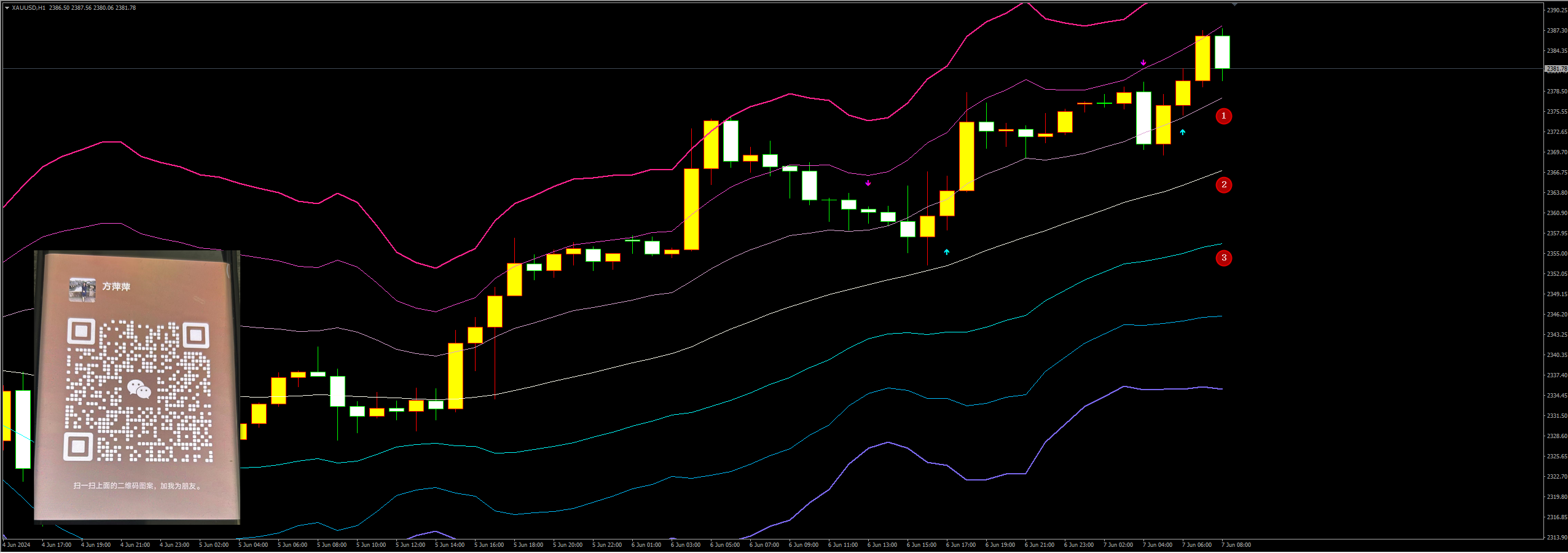 通过对黄金小时图解析得知,黄金从早盘先跌后涨在下方2369一线止跌继续向上突破不断拉升,我们从主图中可以清楚地看到目前整体已经处于上升通道当中,下方123号轨道线已经成为短期的支撑,短期早盘就已经说过继续向上拉升的可能性比较大,上方我们继续重点关注2397和2418一线的重要压力位,在操作上我们继续重点逢低做多