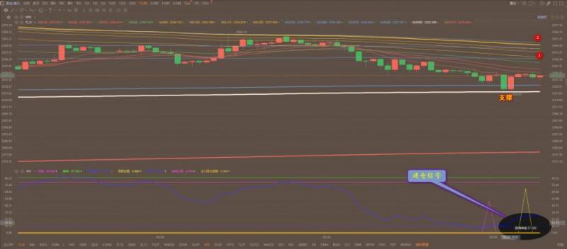 通过对黄金小时图解析得知,黄金从早盘冲高回落目前在下方2322一线的均线支撑位止跌反弹,我们从下方的幅图可以清楚的看到到达下方支撑位出现了建仓信号,虽然目前还构不成反转,但是下方的支撑相对而言也是比较强烈一点,短期上方我们继续重点关注12号均线的压制,在操作上我们选举高空低多思路,具体建议参考早盘策略