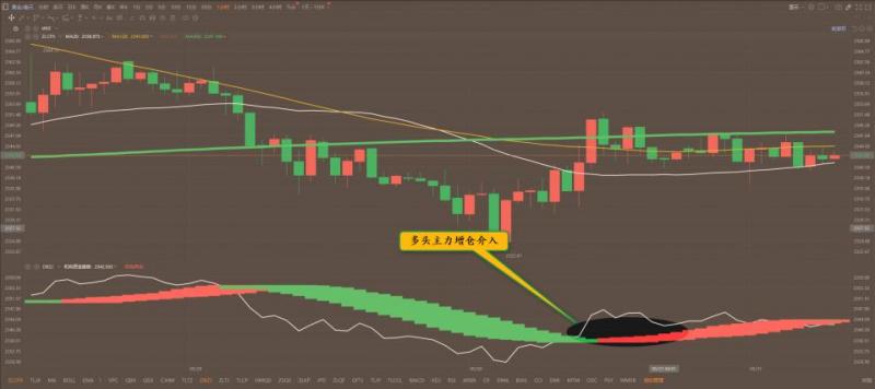 通过对黄金小时图解析得知,黄金从早盘到目前为止小幅震荡调整运行,中午就已经说过,已经发现多头主力在横盘震荡的时候不断地增仓介入,目前通过我们下方的附图也可以清楚的看到多头主力已经走强,说明行情有进一步拉升突破的可能性短期上方我们做嗲你关注2363和2375一线的压力即可,在操作上我们继续重点逢低做多,具