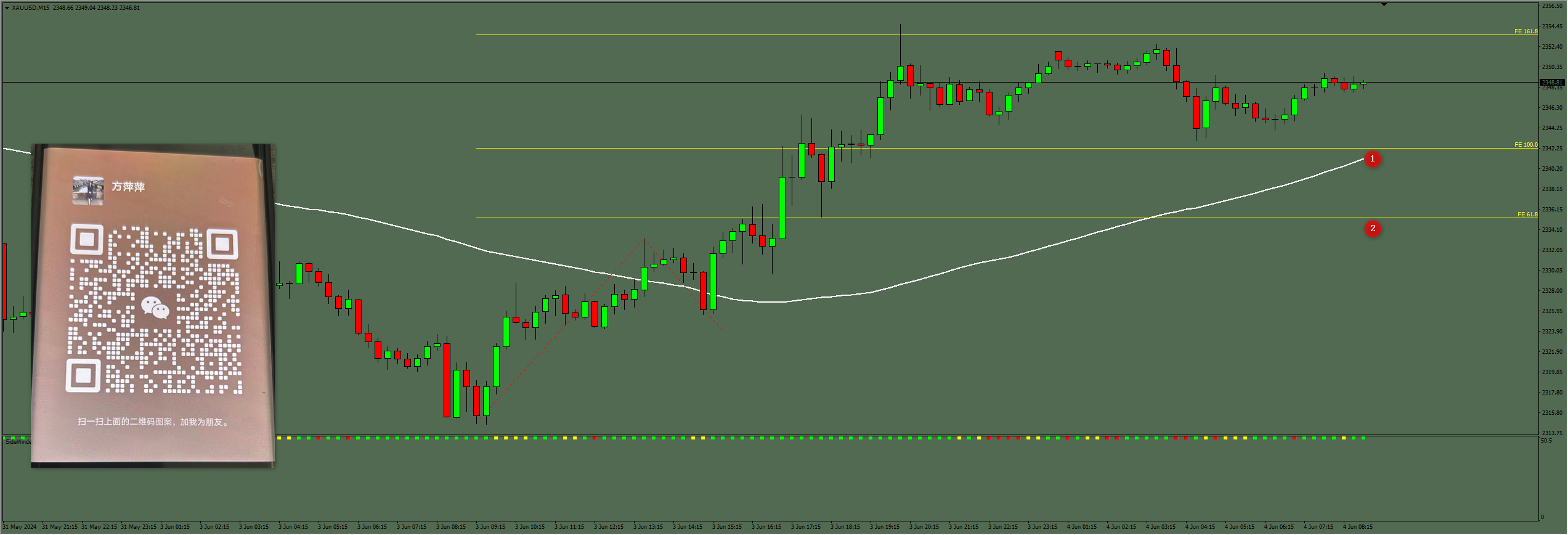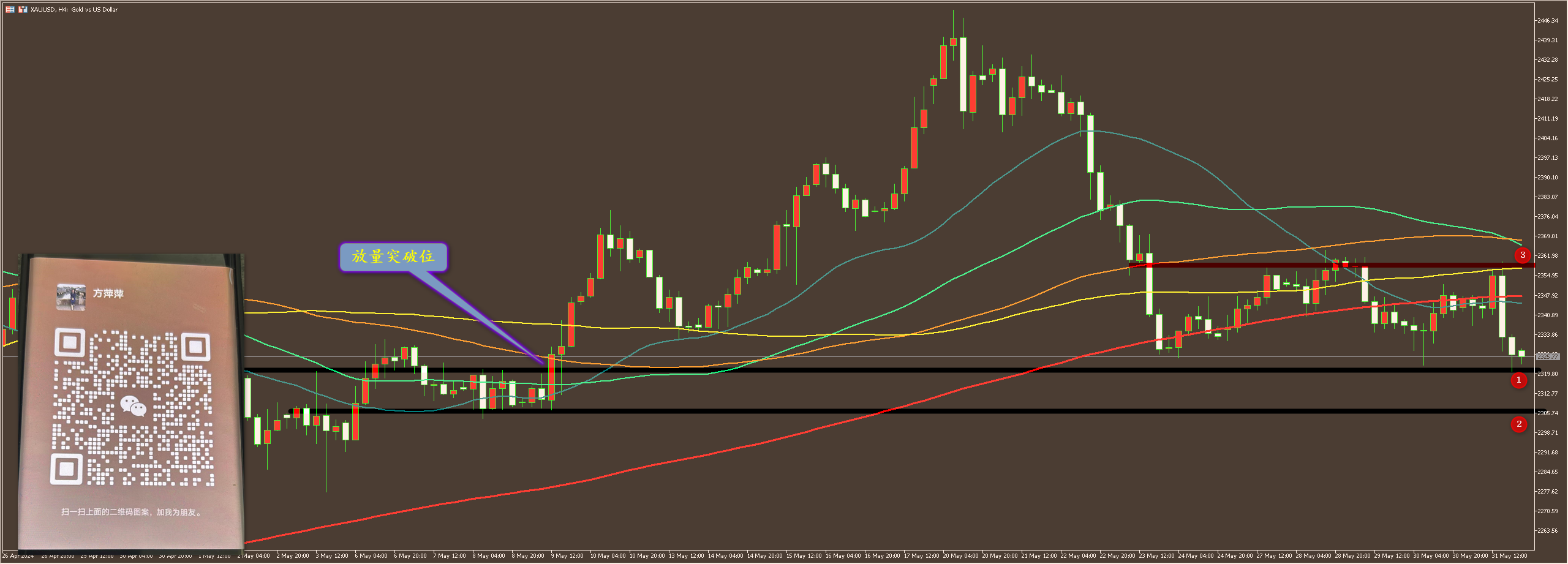 通过对黄金小时图解析得知,上一个交易日黄金继续延续下跌走势反弹到上方3号压力位受阻回落,目前已经到达下方1号支撑位,同时也是前期的放量突破启动上涨的位置相对而言也是有一定的支撑作用的但是不排除进一步下探到达下方2号支撑位2305一线毕竟前期在这里震荡筑底几个小时没有跌破相对而言也是一个强支撑,短期虽然价