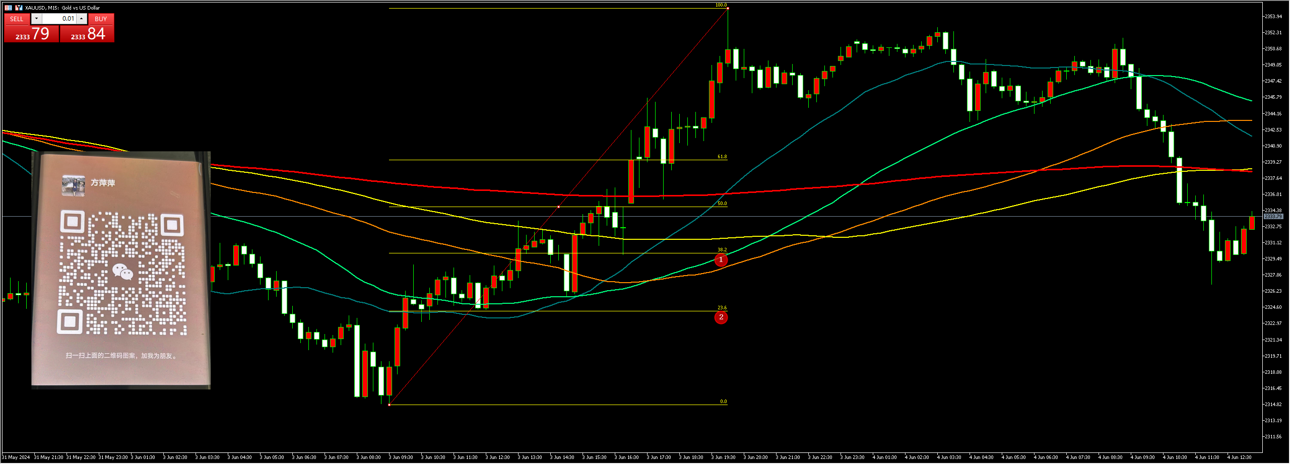 通过对黄金小时图解析得知,黄金从早盘冲高回落到达下方2326一线止跌反弹,中午就已经说过不排除继续回到下方的支撑位,不过短期整体依然是在震荡区间当中运行,短期下方我们通过黄金分割率可以清楚的看到下方2324一线将是下一个支撑,短期不排除再次回到昨日的低位位置2315一线,小妹认为到2315的可能性不大,短期继续