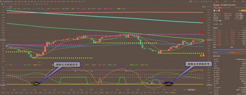 通过对原油小时图解析得知,昨日行情低开高走如期到达下方77.80一线止跌反弹晚间到达上方79.40一线的均线压力位受阻回落,目前已经再次到达预计还要向上反弹,短期已经形成底部逐步抬高的迹象,我们从下方的附图也可以清楚的看到连续两次在底部区域出现了超级主力抄底的信号预计行情将会继续向上反弹上涨但是受交割期将