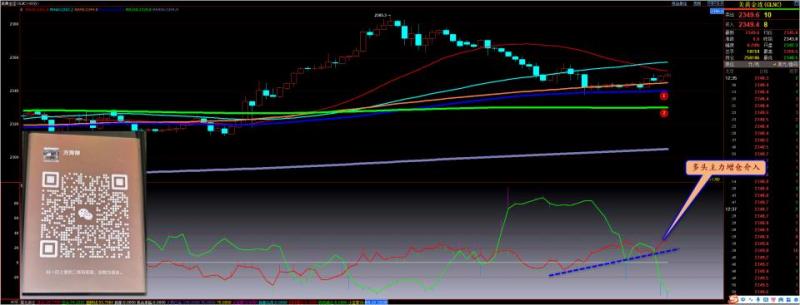 通过对黄金小时图解析得知,黄金从砸盘回来下方90日均线支撑位小时继续反弹,即将到达上方30日均线的位置,行情之所以会出现反弹我们从下方的附图可以清楚的看到多头主力不断的增仓介入空头主力大量的出逃,目前多头主力已经开始走强上方一旦放量突破并且站稳2348一线行情将会举行向上拉升,短期上方我们占地昂住2361和2