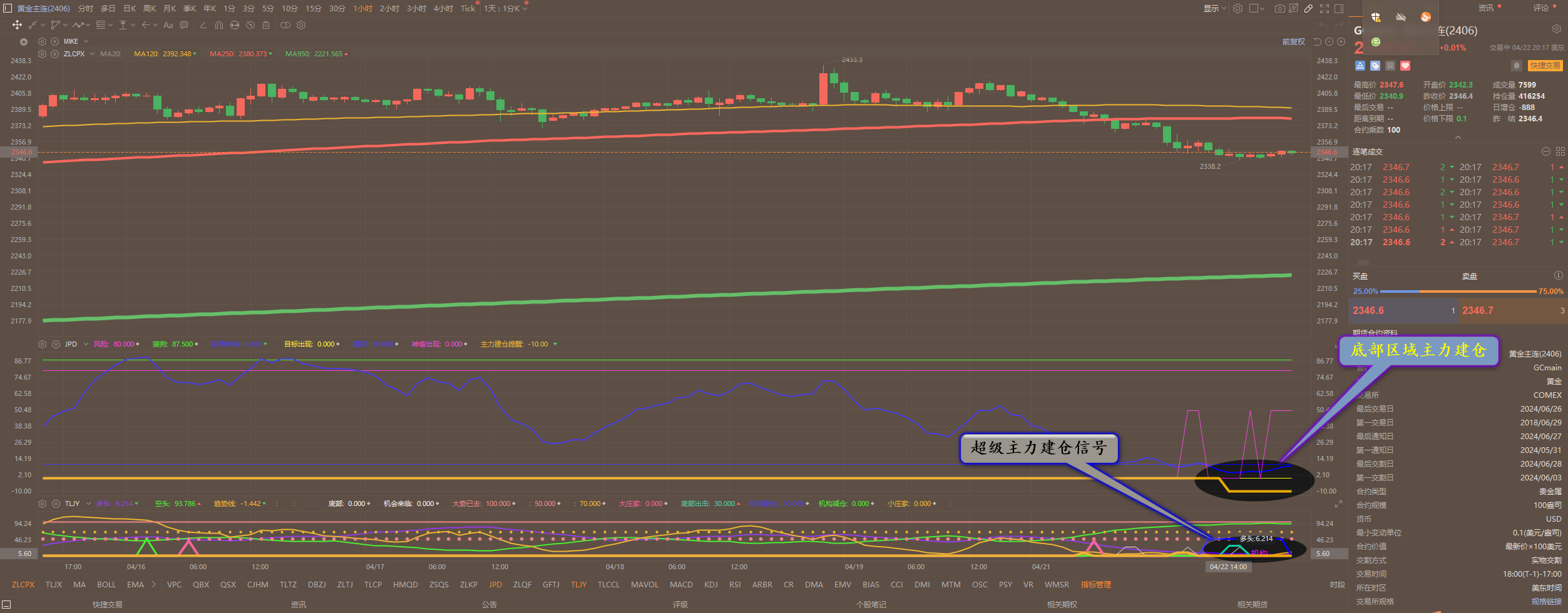 通过对黄金小时图解析得知,昨日行情低开低走行情一路震荡下行最低到达前期的探底的位置2324一线,多头主力节节败退,但是我们从下方的附图可以清楚的看到短期已经到达底部区域有超级主力建仓信号相对而言盘中至少得要反弹一波短期上方我们暂且关注2352和2365以及2378一线的压制,下方我们重点关注2325和2311一线的支撑