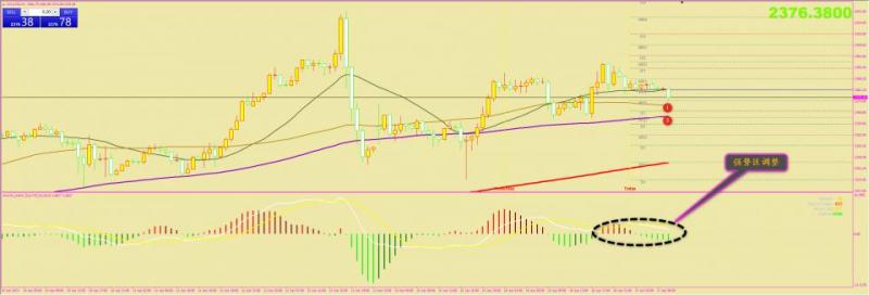 通过对黄金小时图解析得知,黄金从早盘到目前为止冲高回落机会到达下方1号均线的支撑位(2371一线)以及下方2号均线的支撑(2365一线),短期已经形成震荡上行走势,我们从下方的ACD也可以清楚的看到目前依然是在强势区调整运行,依托均线系统震荡上行,在操作上我们继续重点逢低做多,具体建议如下: 黄金2371