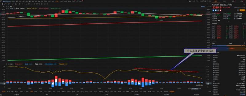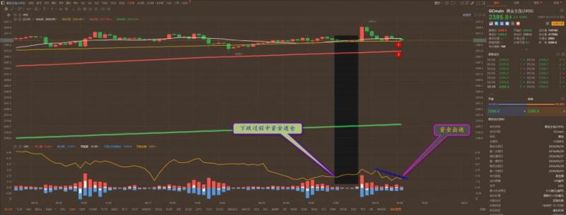 通过对黄金小时图解析得知,黄金从早盘到目前为止继续小幅反弹中,,但是我们从下方的附图可以清楚的看到整体市场资金流是处于出逃的状态,说明反弹即将结束,加上目前已经到达上方的第一压力位2380一线,美盘时间段非常有可能冲高回落,短期预计将会继续窄幅震荡调整运行,在操作上我们继续高空低多思路具体建议参考早