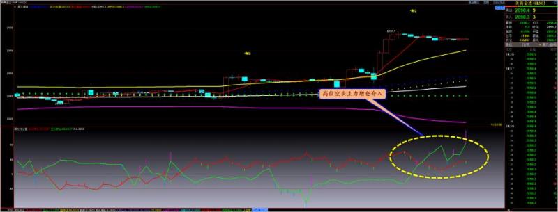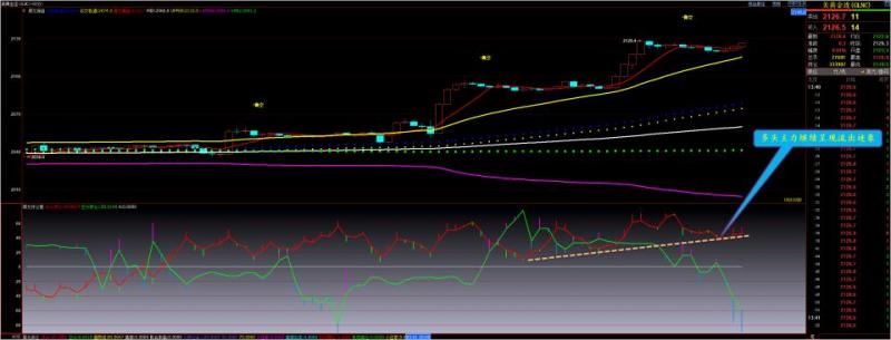 通过对黄金4小时图解析得知,昨日行情先跌后涨晚间再次放量突破创新高已经到达本轮的目标位2120,我们从下方的附图可以清楚的看到自从前期行情冲高回落在底部区域横盘震荡了3个月的时间,中间反反复复经历了漫长的煎熬,在每一波的底部区域都出现了底部共振的信号,最近的在1984一线的时候就已经提醒过超级主力已经抄底