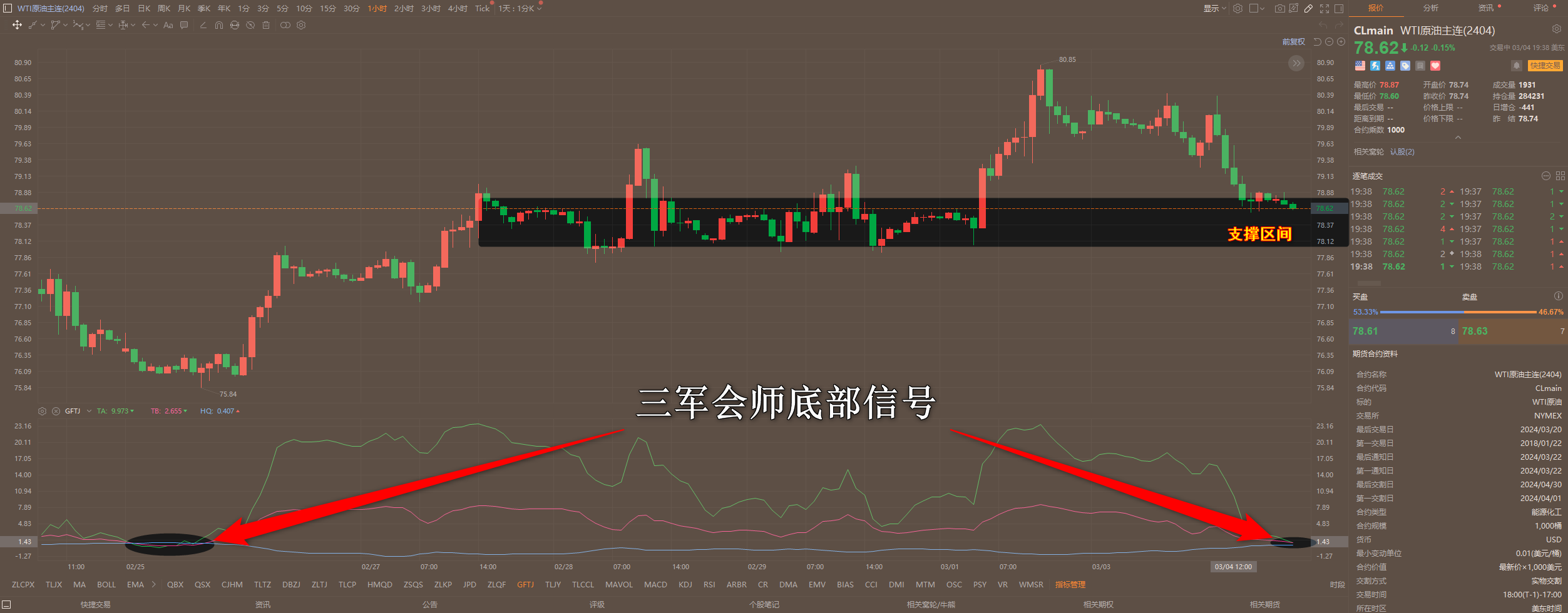 通过对原油小时图解析得知,昨日行情先跌后涨再下跌,在盘中形成宽幅震荡走势是最容易出现启动行情的标志,我们从下方的附图也可以清楚的看到目前再次出现阶段性底部信号,但是不排除今日在继续震荡调整一波,短期下方我们重点关注12号的支撑即可,上方我们重点关注3号压力位,不出意外的话近两个交易日即将要启动反弹上