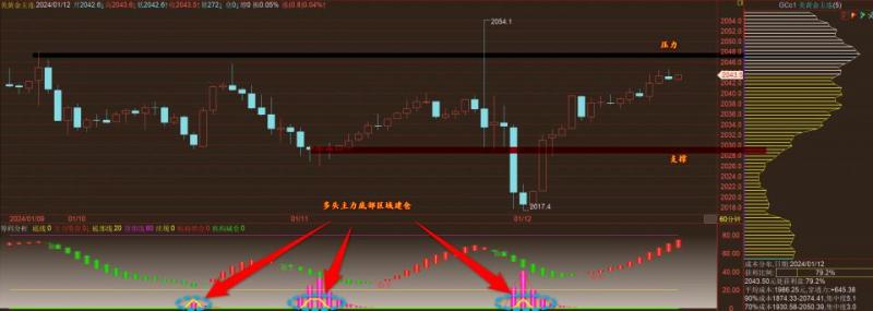 通过对黄金小时图解析得知,黄金从早盘一路震荡上行,目前在2040以下震荡徘徊,我们从下方的附图可以清楚的看到近2个交易日多头主力在底部区域连续建仓布局介入,到目前为止多头资金依然处于持续流入迹象,行情非常有可能进一步的震荡上行,短期上方我们重点关注上方筹码峰值的位置2043一线,一旦放量突破将会继续加速上