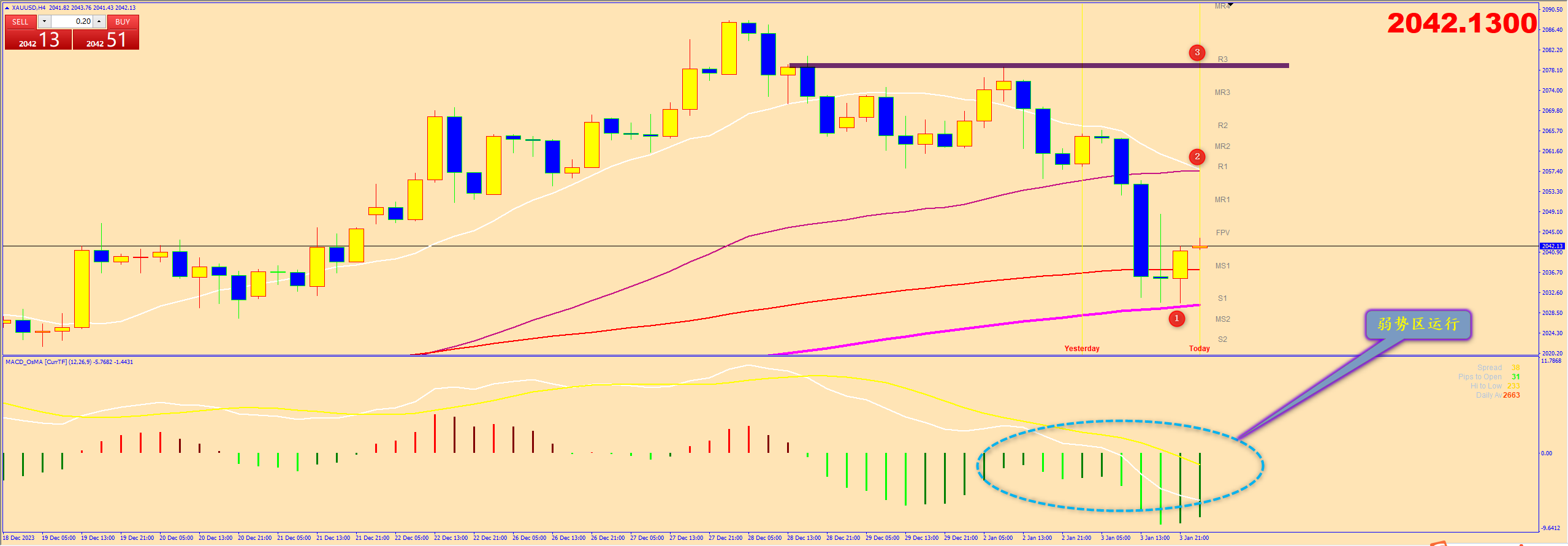 通过对黄金小时图解析得知,昨日行情先涨后跌再上涨,我们从下方的附图可以清楚地看到昨日在下方2030一线出现了底部信号,昨日小幅反弹了一天目前依然在2043一线震荡盘整,正如昨日所说短期就会继续要横盘震荡调整进行筑底动作,短期下方我们重点关注34号的均线支撑,上方12号均线的压力,短期在操作上我们继续高空低多