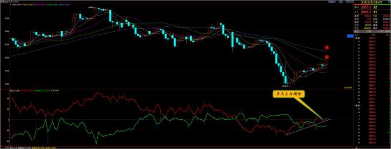 通过对黄金小时图解析得知,黄金从早盘继续延续反弹走势目前在上方1号均线压力位有所压制,我们从下方的附图可以清楚的看到多头主力处于增仓的状态,但是上方依然受制于均线系统的压制,短期应该是还要继续震荡调整运行,下方我们重点关注2030一线的支撑,短期在操作上我们继续先高空低多思路具体建议参考早盘策略