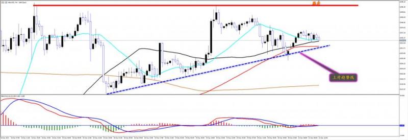 通过对黄金小时图解析得知,黄金从早盘在下方止跌反弹目前在2065一线稍微受阻回落,我们从下方的附图也可以清楚的看到短期在零轴上方已经调整结束唯一欠缺的是多头动能明显不足,但是短期大方向依然是上涨不变下方我们重点关注下方上升趋势线的支撑以及下方均线的支撑,短期在操作上我们继续高空低多思路,重点逢低做多
