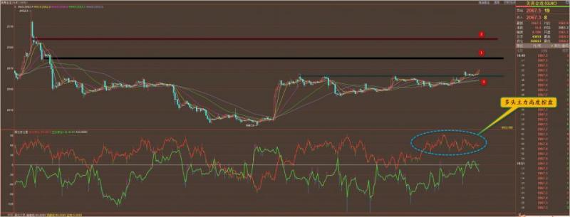 通过对黄金小时图解析得知,黄金从早盘到目前为止继续延续上涨走势如期突破了近期的高点,我们从下方的附图可以清楚的看到多头主力处于高度控盘的状态虽然有部分资金出现顶背离,毕竟短期大方向依然是上涨不变,短期上方我们重点关注12号的压力位,下方重点关注3号支撑位,非常有可能在上方的压力位冲高回落调整一下,短