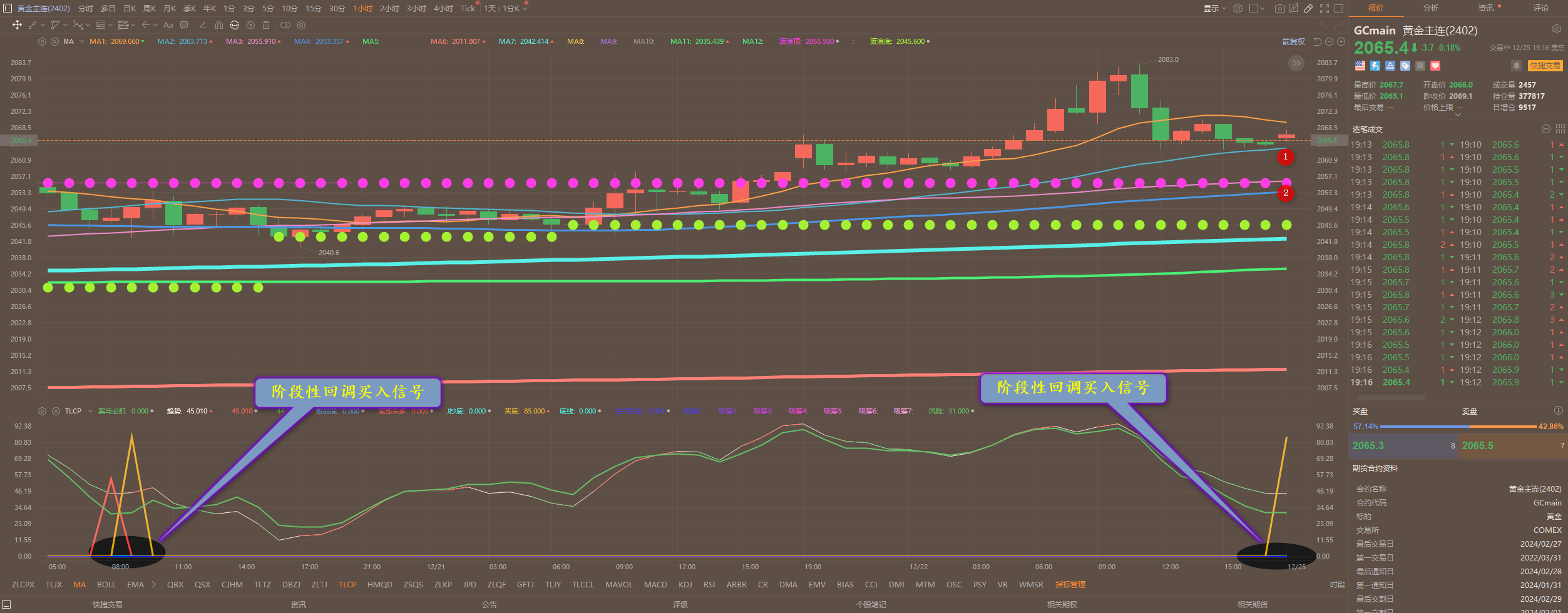 通过对黄金小时图解析得知,上一个交易日先涨后跌到达是否2070一线受阻回落,目前即将到达下方一号均线的支撑位,我们从下方的附图可以清楚地看到在下方再次出现回调买入信号,在前期均线支撑位出现信号相对而言短期出现了一波40美金的反弹,预计这次也将会出现一波反弹上涨动作,小妹认为创新高的可能性更大,短期上方2