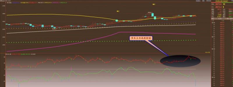 通过对原油2小时图解析得知,昨日行情先涨后跌再上涨,晚间在下方双轨的支撑位止跌反弹,我们从下方的附图可以清楚的看到多头主力连续2个交易日处于流出的状态,说明有多头主力在高位拉高出货,整体行情依然偏强走势,短期行情继续沿着布林带以及双轨继续震荡上行,重点关注12号的支撑即可,在操作上我们继续重点逢低做