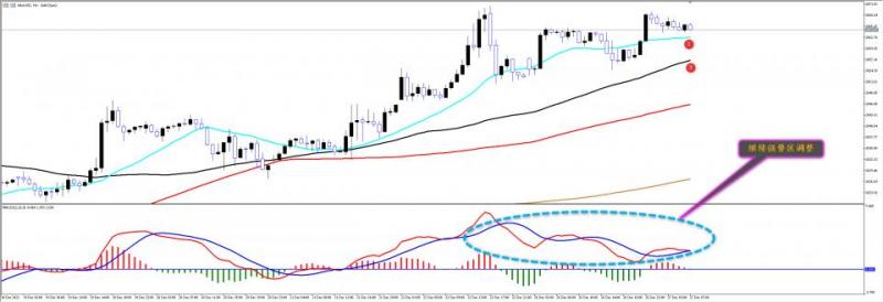 通过对黄金小时图解析得知,黄金从早盘冲高回落以来一直小幅震荡运行,行情正如昨日所说继续震荡上行,我们从下方的ACD也可以清楚地的看到继续在零轴上方运行虽然多头动能有所减缓,短期下方我们重点关注12号均线的支撑小妹认为继续沿着均线系统震荡上行,短期在操作上我们继续高空低多思路,重点逢低做多,具体建议参考