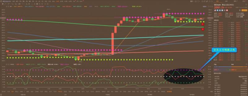 通过对黄金小时图解析得知,黄金从早盘到目前为止继续在高位窄幅震荡调整运行,在下方2031一线的支撑来回跑,我们从下方的附图可以清楚地看到空头势能有所增加预计还要继续调整修复一下正如我们昨日所说得要进行以时间换空间的手法调整,短期下方我们暂且关注一下下方12号的支撑,在操作上我们许高空低多思路,重点下来