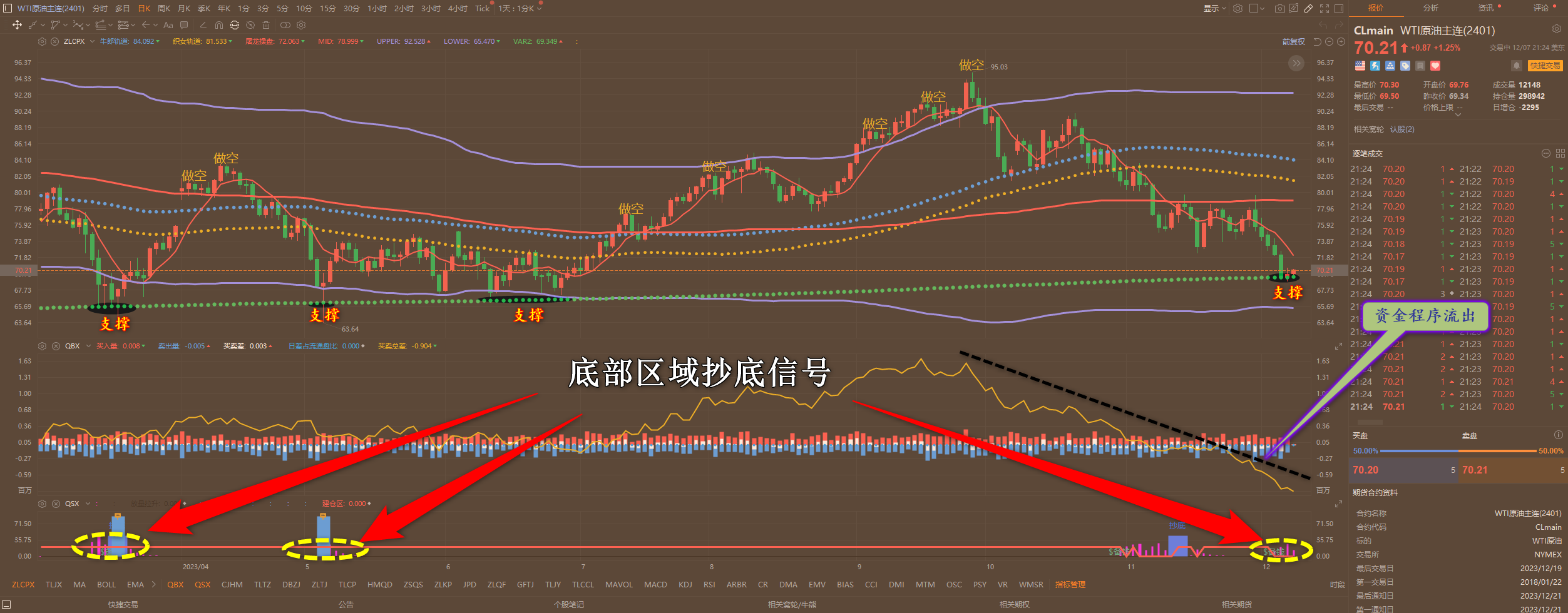 通过对原油日线图解析得知,自从原油从高位冲高回落以来一路震荡下行我们从下方的附图可以清楚的看到在见顶之后市场资金流持续流出,目前已经到达下方的均线支撑位在下方这次出现进仓信号,在前期回到这一均线支撑位的时候相对而言都出现了一波不错的反弹上涨动作,目前已经再次到达预计将会也要反弹上涨一波短期我们重
