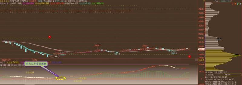 通过对黄金小时图解析得知,昨日行情冲高回落在上方2008一线反弹动力不足整体呈现下跌走势,我们从下方的幅图可以清楚地看到行情向下运行但是空头能量柱呈现缩短迹象说明空头的力量逐步处于衰竭迹象,我们从主图的下跌空间也可以看到12号的下跌空间越来越小也是说明空头动能的不足,短期上方我们重点关注一下上方20均线