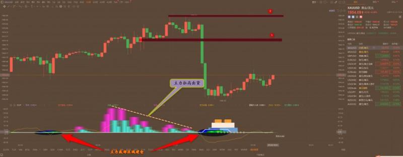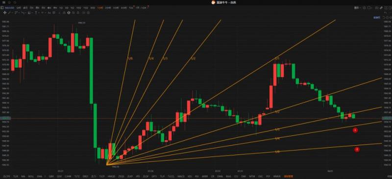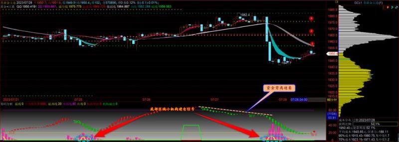 通过对黄金小时图解析得知,昨日行情先跌后涨接近下方2号支撑位止跌反弹晚间到达上方1972一线冲高回落我们从下方的幅图中可以清楚地发现前期在回落的过程中在阶段性底部区域都出现了多头主力布局建仓的动作星期五晚间也是都出现了不错的反弹空间上周五受数据影响冲高回落,我们上周五就已经说过短期将会继续宽幅震荡运行