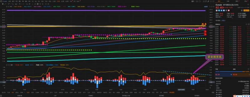 通过对黄金小时图解析得知,上一个交易日黄金继续延续反弹走势,自从黄金回调到下方1号均线支撑位我们从下方的幅图可以清楚地看到在均线支撑位出现了主力吸筹迹象以及抄底信号,短期的均线系统依然是处于比较集中的状态上有压力下有支撑,短期我们目前重点关注上方34号均线的压制即可以及下方1号均线的支撑,在操作上我