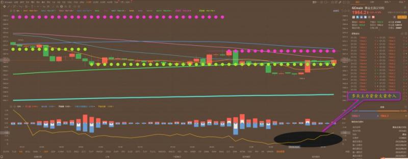 通过对黄金小时图解析得知,自从昨日晚间下探到下方1963一线早盘止跌反弹,目前虽然反弹力道不大,但是我们从下方的附图可以清楚的看到多头主力在底部区域大量的介入,非常有可能进一步的向上反弹,短期上方我们重点关注上方的均线压力即可,短期在操作上我们继续高空低多思路,重点逢低做多即可具体建议如下: 黄