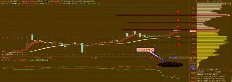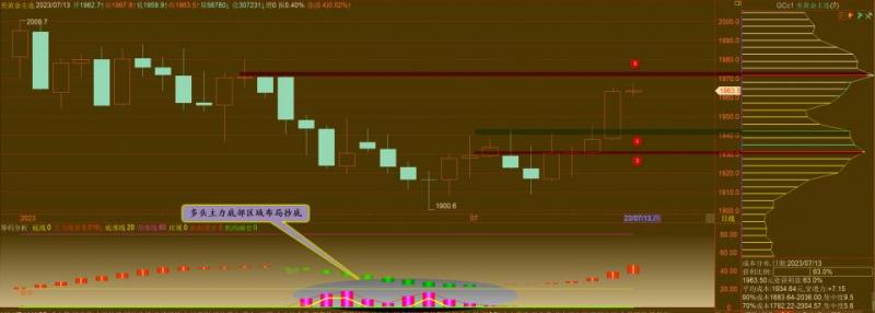 通过对黄金小时图解析得知,上一个交易日行情如期在高位冲高回落,我们从下方的幅图可以清楚地看到上一个交易日行情在高位横盘震荡调整期间多头主力已经出现了拉高出货动作多头的力道明显不足短期下方我们重点关注12号平台的支撑区间,上方我们继续重点关注1968一线的压力,短期继续回落调整的可能性大一点,短期在操作