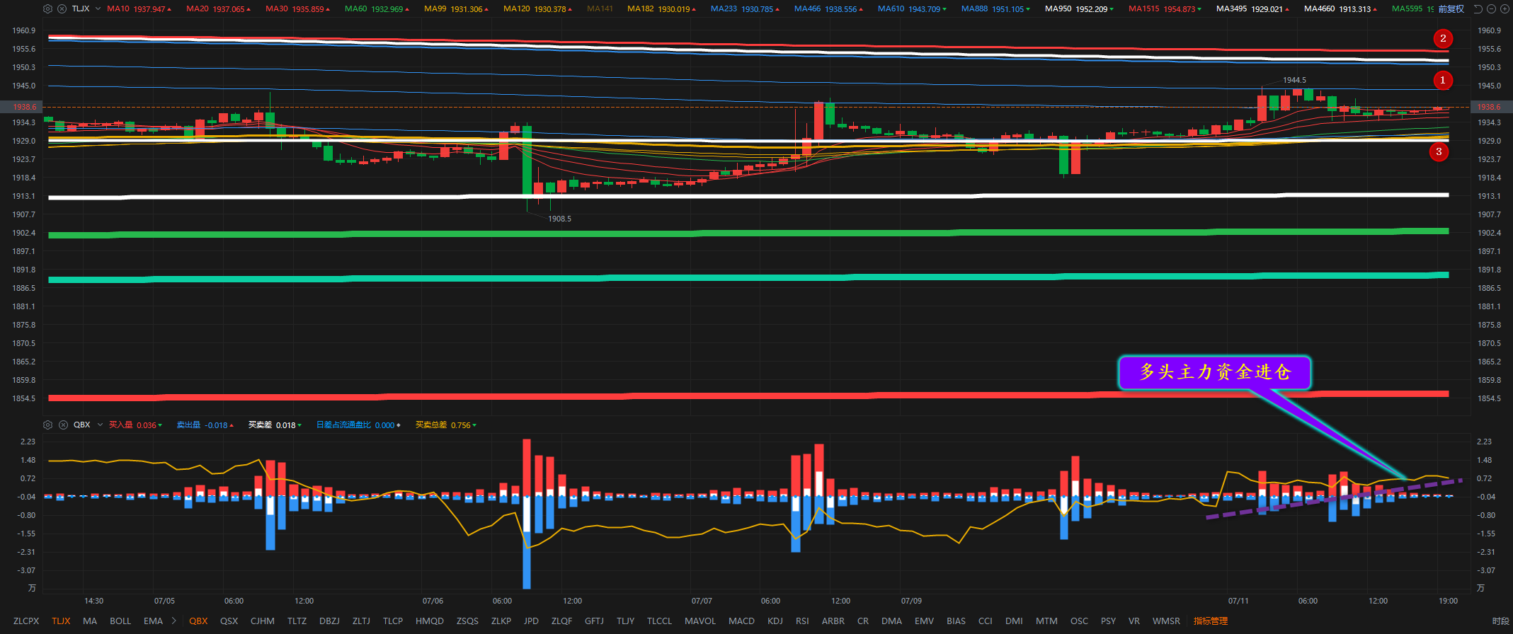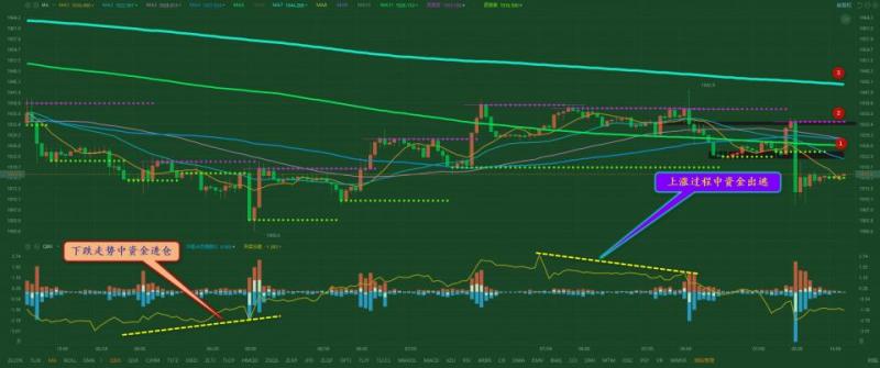 通过对黄金小时图解析得知,昨日行情如期震荡上行一口气到达上方1938一线,目前有小幅回调动作,我们从下方的幅图可以清楚地看到整体市场资金流呈现继续流进动作说明行情将会继续震荡上行上方我们继续重点关注12号的均线压力位即可,下方3号均线支撑即可,前几个交易日就已经说过这几天即将出现方向性选择我们预期向上突