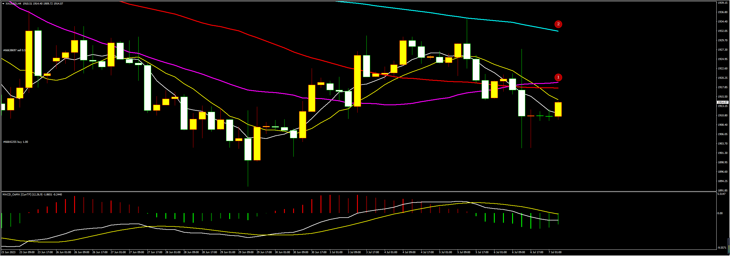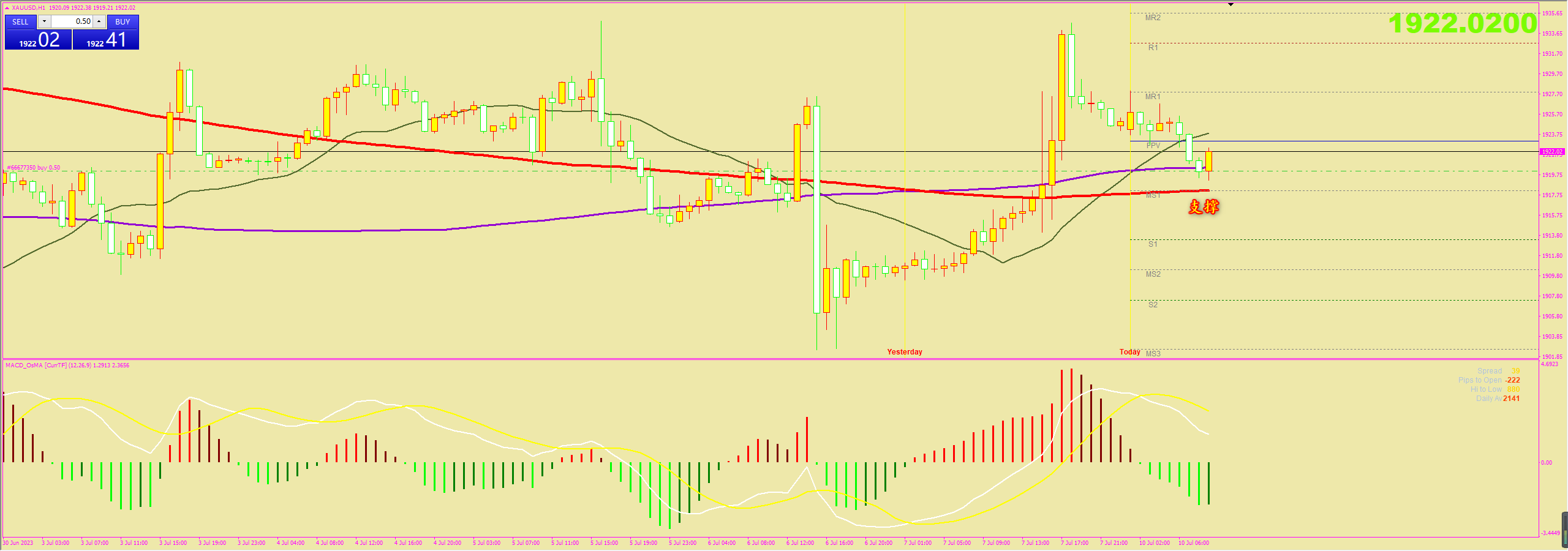 通过对黄金小时图解析得知,昨日行情如期先跌后涨在下方的1912一线止跌反弹目前再次到达上方1924一线,我们从下方的ACD也可以清楚地看到短期在零轴上方运行属于强势调整行情包括下跌的空间越来越小行情有进一步反弹迹象短期上方我们继续重点关注45号的压力以及下方1,23号的支撑短期不排除意外向上突破的可能性比较大一