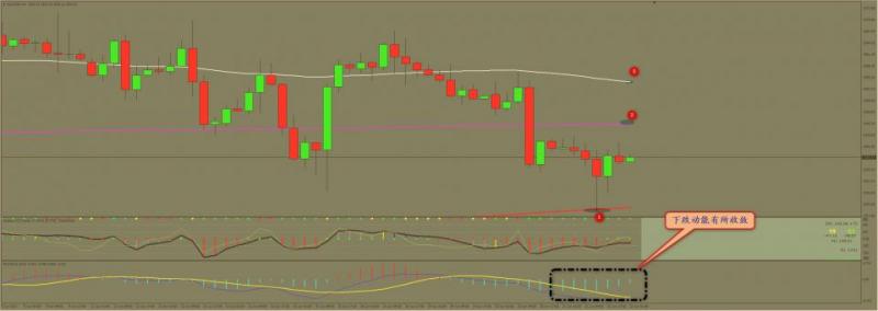 通过对原油小时图解析得知,昨日行情如期冲高回落白天时间段在上方1号均线压力位冲高受阻回落晚间到达下方2号均线支撑位,目前依然反弹过程中目前上方3号均线已经成为短期的压力,我们从下方的ACD也可以清楚地看到目前已经进入零轴下方运行加上多头的动能柱有所减少说明多头的动能欠缺行情有进一步下跌的可能性,短期我