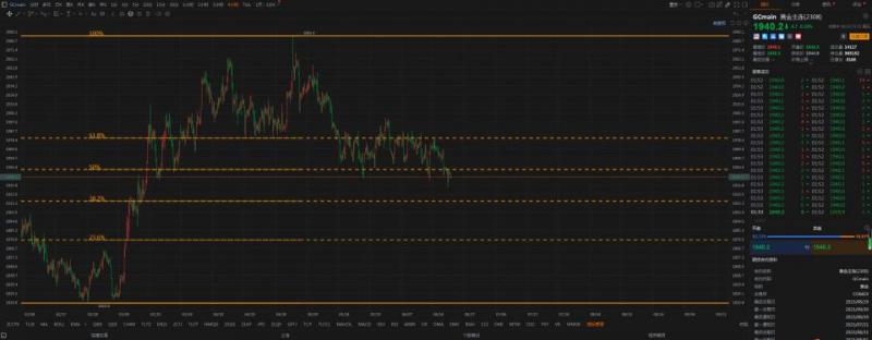 通过对黄金小时图解析得知,昨日行情如期下跌到达我们昨日下方的2号支撑位,目前有所反弹,我们从下方的ACD也可以清楚地看到空头绿色能量柱有所减缓说明下跌的动能欠缺行情有进一步反弹的需求短期上方1948一线反过来已经成为短期的压力,短期大方向依然是在区间震荡调整为其主要目的蓄势上涨的可能性更大比较大一点,就