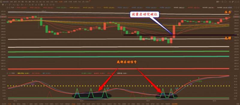 通过对黄金小时图解析得知,黄金从早盘到目前为止依然是势头不减直逼1971一线,我们从下方的附图可以清楚的看到在下方连续多次出现了底部启动信号,虽然上方还有均线的压制不难看出多头的意愿比较强烈突破1971的可能性也是比较大我们重点关注1985一线的压制即可下方我们重点关注昨日放量突破启动的位置即可,相对而言有