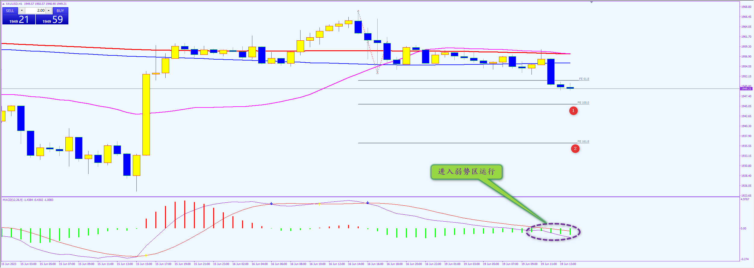 通过对黄金小时图解析得知,黄金早盘再次延续下跌走势如期到达下方1931一线止跌反弹,早盘就已经说过下方已经再次出现多头主力建仓信号,前期在反弹的过程中都出现了大幅反弹动作,今日再次出现相对而言至少也得30美金左右的空间上方我们继续关注1971一线的压制即可,短期在操作使我们继续重点逢低做多,具体建议盘中通