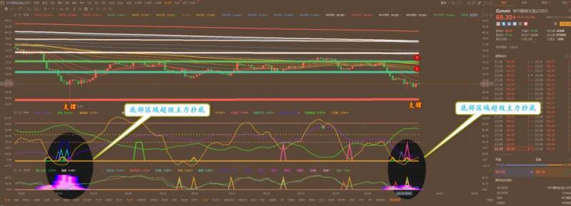 通过对原油4小时图解析得知,昨日行情继续震荡下行到达下方67.00一线止跌反弹,从下方的附图我们可以清楚的看到在前期63.60一线到达下方的均线支撑位出现了多头主力布局建仓以及超级主力抄底信号形成一波上涨,目前再次出现这个情况也是非常有可能反弹一波但是也不排除金元宝下探下方均线的支撑位,短期上方我们重点关注