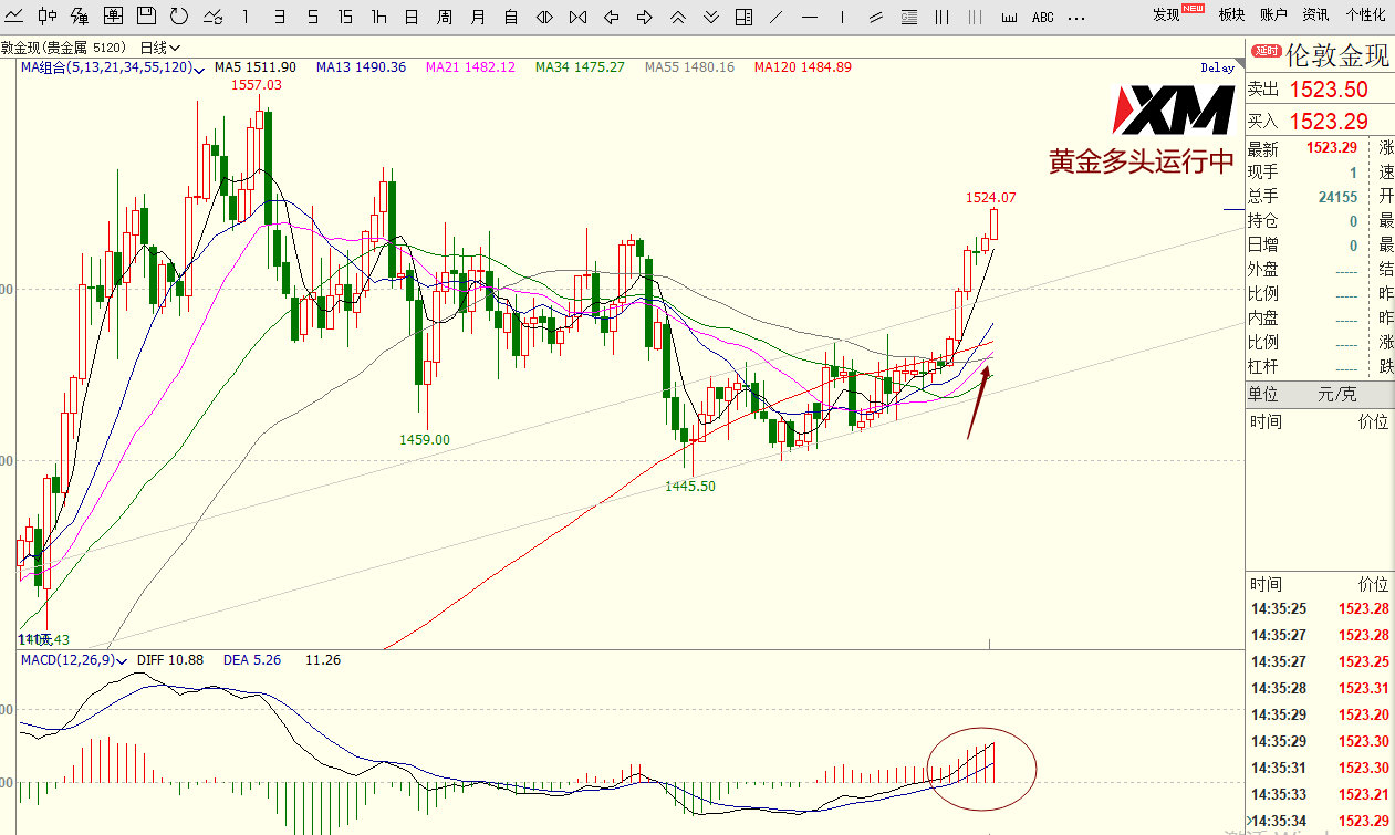 黄金日线在1510.5上方继续单边多运行,前期多单可继续持有。或关注上冲关键压制的止盈机会。
