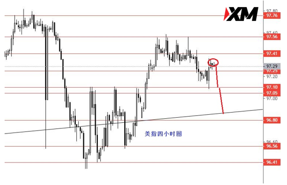 美指本周虽然下跌力度较小,但一直呈震荡下行格局。从图形来看,本周重点关注下方97.10区域强支撑,若能成功下破,后市跌势将继续。若此区域反弹力度较大,则向上测试98.00一线。后市中线只要97.75不破就是看空至95.10,成功上破后再重新调整思路。今日短线按震荡下行操作,日内短线操作建议:97.30附近做空,止损97.55,目标看向97.10,成功跌破后再看向96.80。控制仓量,严格止损。