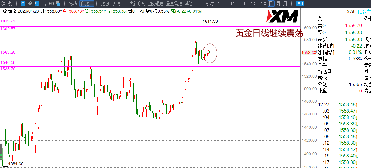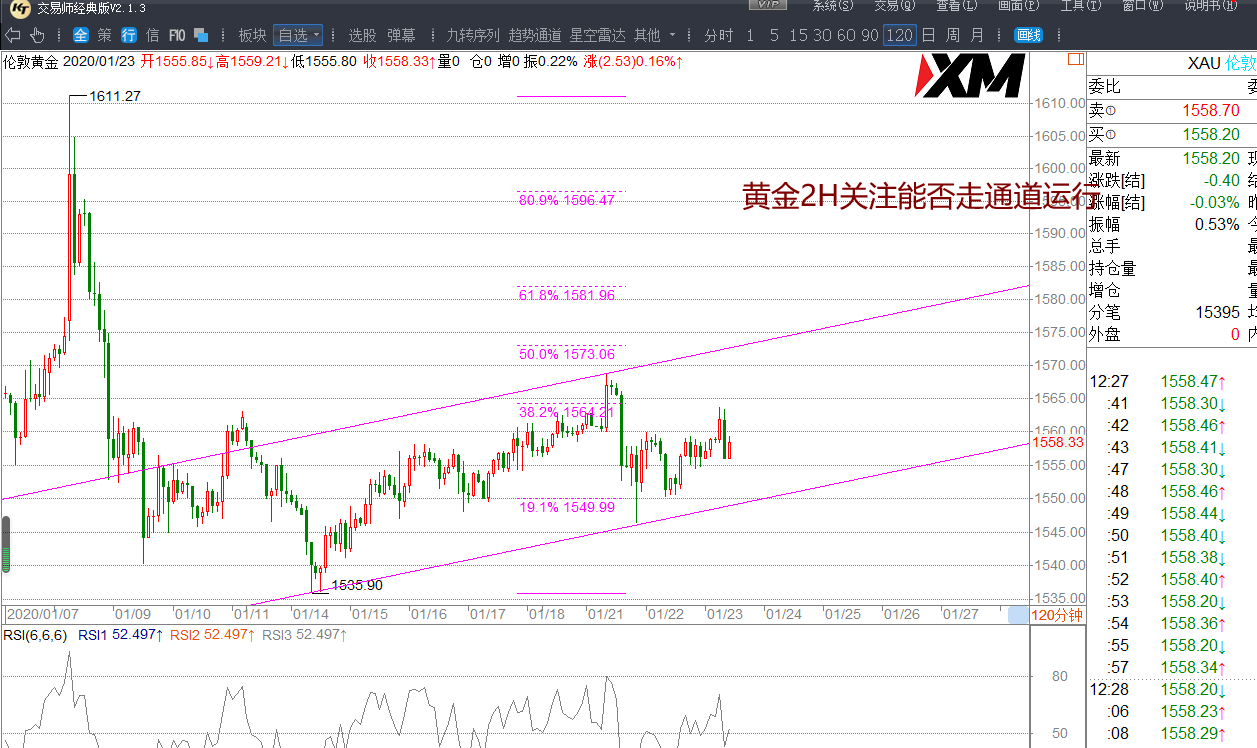 昨日走十字星,市场回顾早两天的震荡运行,今天早盘冲高回落。短级别画出通道运行,关注黄金是否走规律的通道调整,这样在交易机会上比较容易把握。