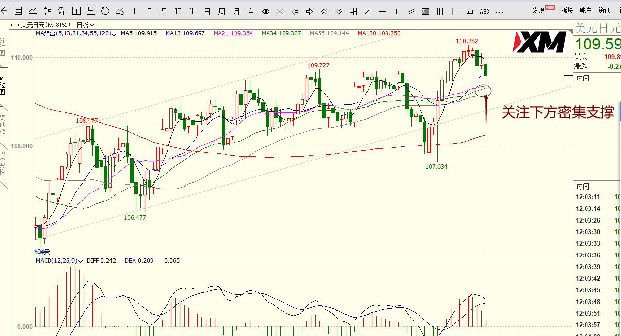 支撑位:109.35/109.30-109.15-108.95-108.50