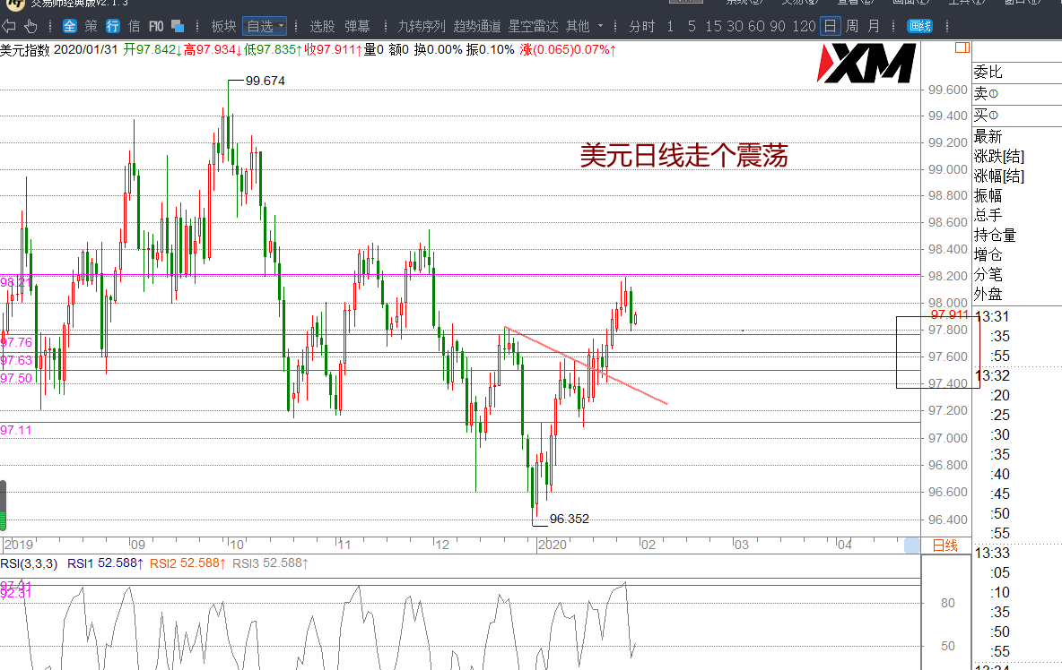美元:昨日美元如预期进行了小调整,因当前日线还是多头趋势,短幅调整之后,依然存在低多的交易机会。今日关注97.73/97.67的支撑,日内保持震荡交易思路。