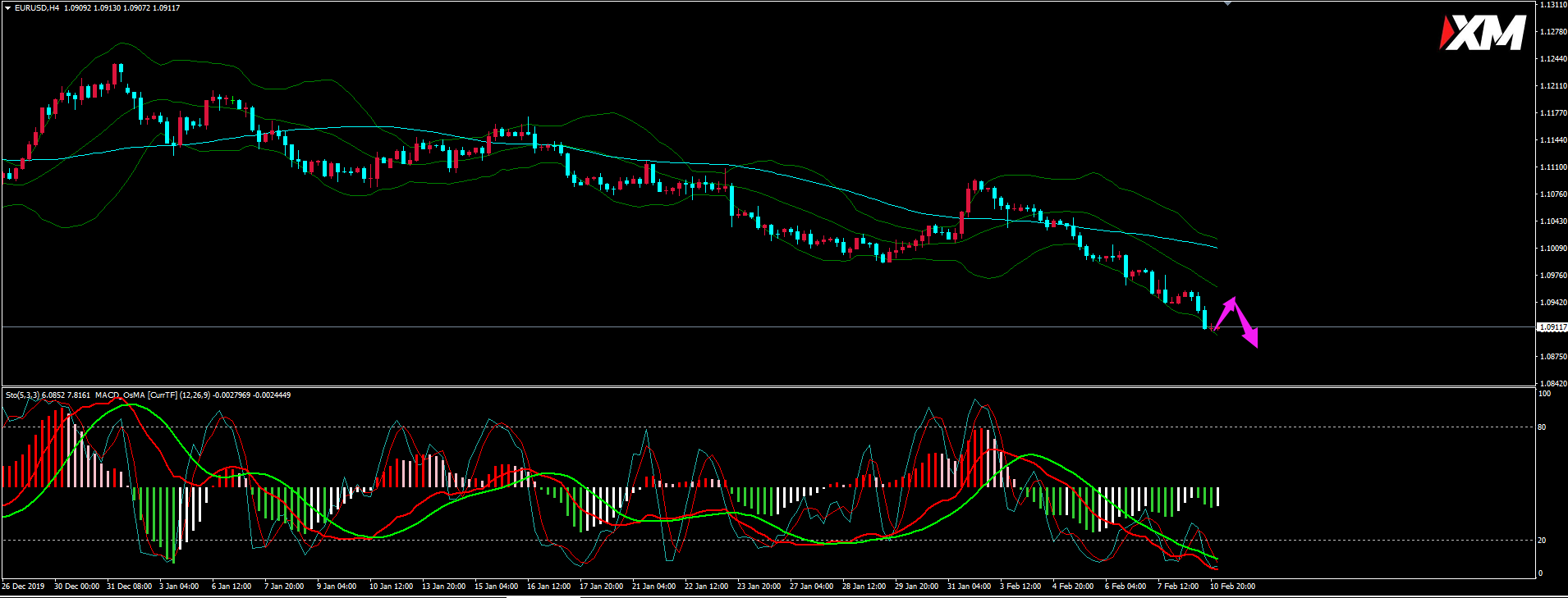 4H昨日触及MA10一线空头延续,目前短期均线偏下,MACD零轴下方死叉运行,短线技术性调整后有望维持震荡下行。