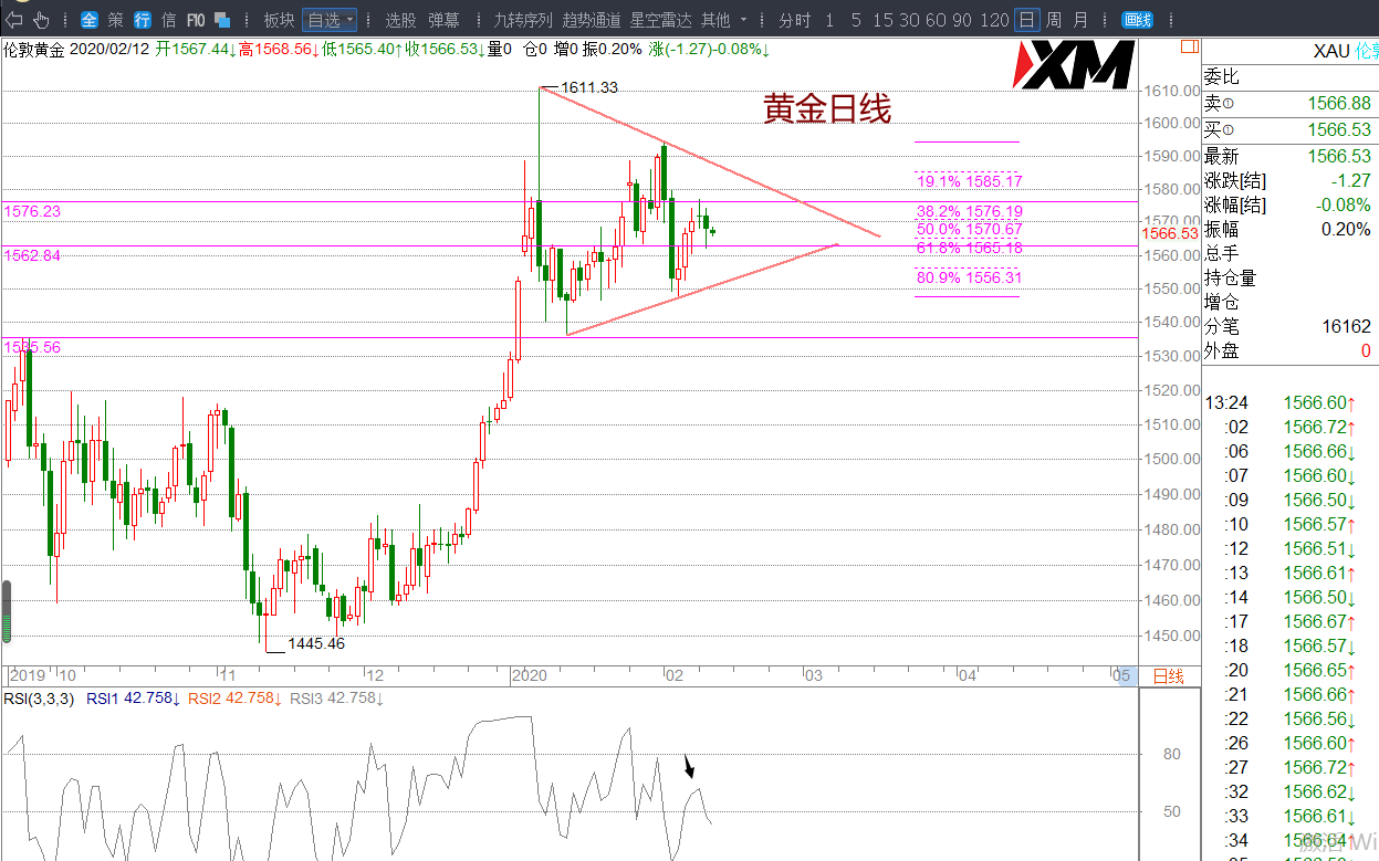 (2)黄金一但跌破1560一带将加速往1556-1552下跌的概率。