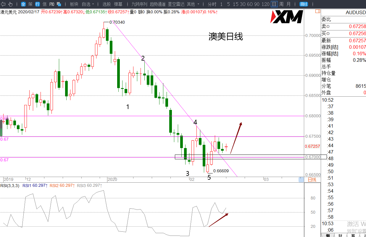 支撑位:0.6705/0.67-0.6660-0.6640-0.6620