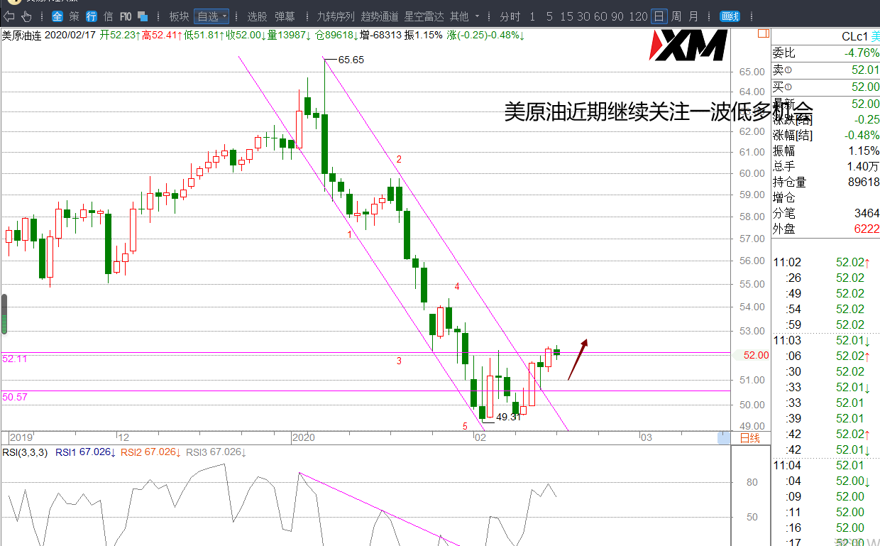 原油51.30上方关注低多机会,可在回踩51.50附近低多,止损51,目标52.15-52.30-52.60