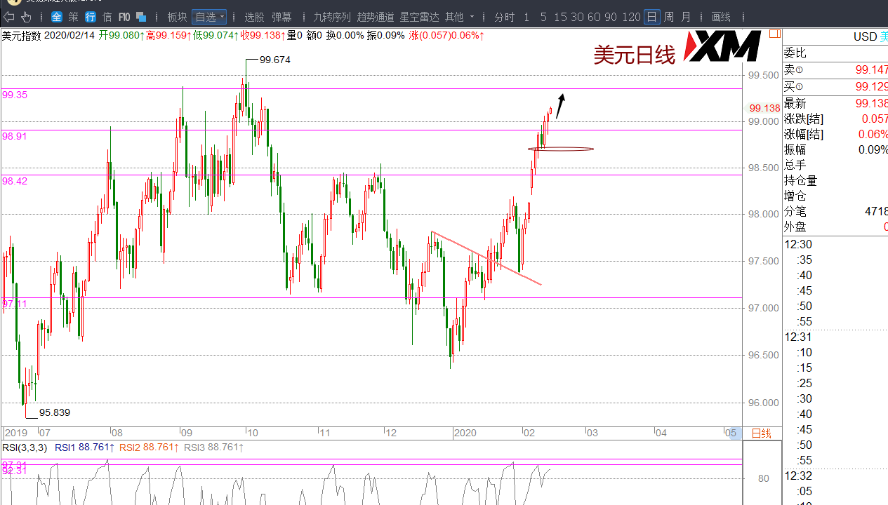 美元在98.92上方继续保持多头运行,近期需小心市场会短期的冲高回落。谨慎低多。