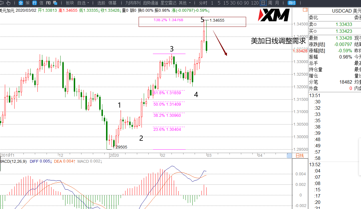美加这一波日线走出了5波上涨结构,空间到达一个关键幅度,近期将大概率运行abc的震荡结构。有短幅高空机会。