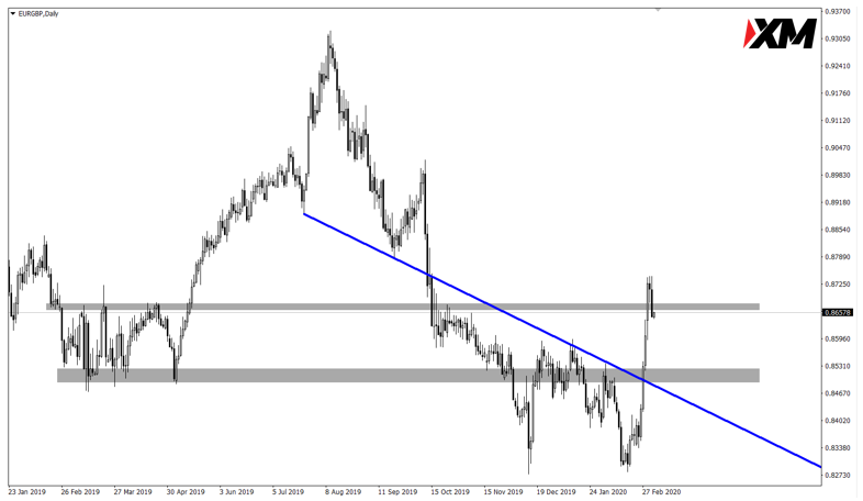 XM汇评 - 欧元/英镑 强势上涨后再次回到下跌区间内