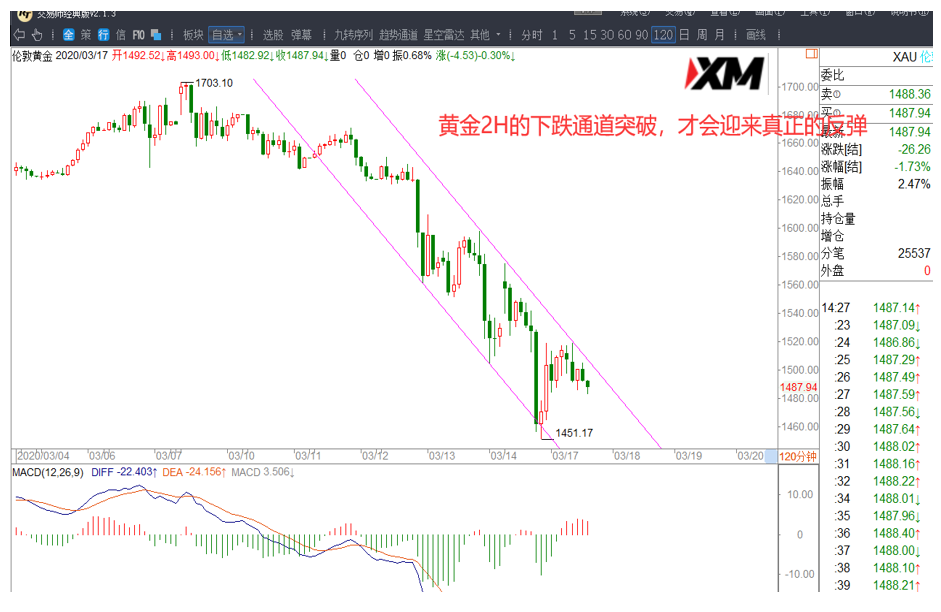 黄金日内没明确突破下跌通道运行前,依然保持高空策略,想进多的亲们关注通道运行结束后的回踩多和突破多机会。