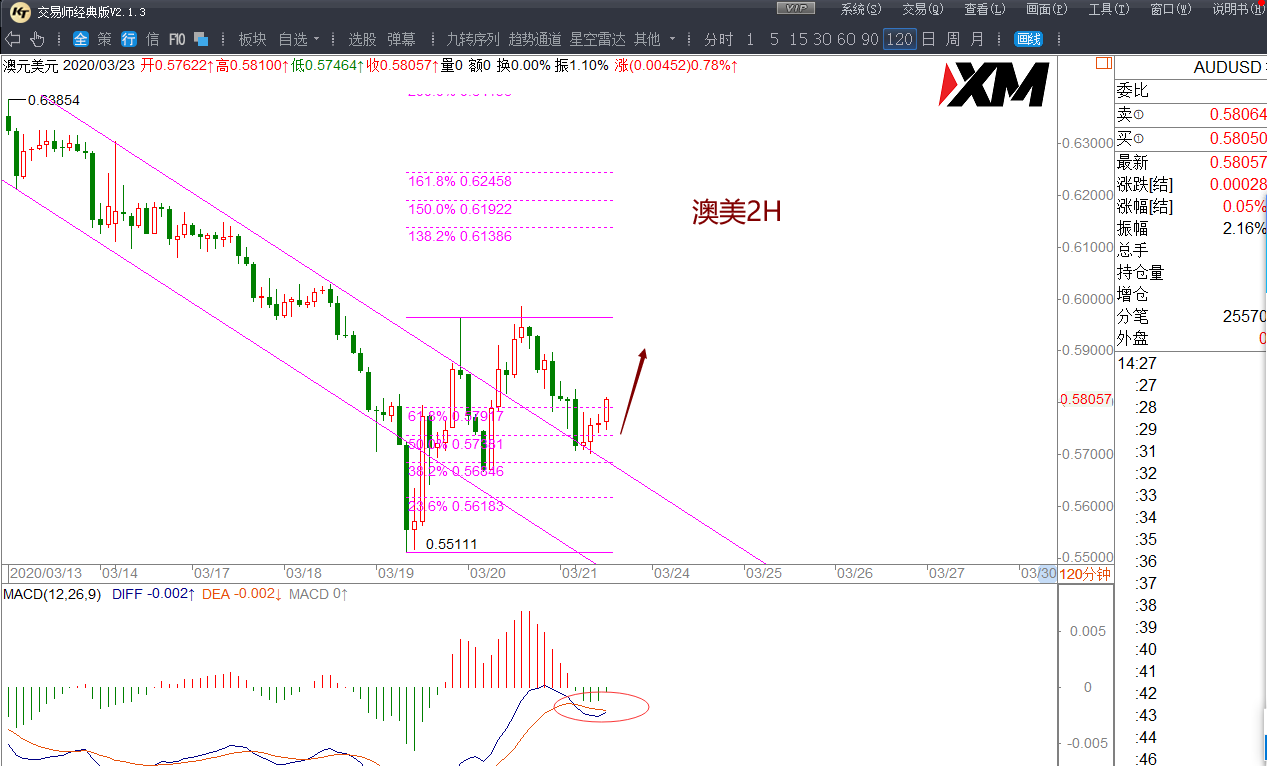 (1)澳美日线在0.5664上方,有震荡短多的操作机会,可关注回踩0.5735/0.5710区域多机会,目标0.58-0.5840-0.5875;若直接跌破0.5665,意味着澳美空头强势,并未止跌。