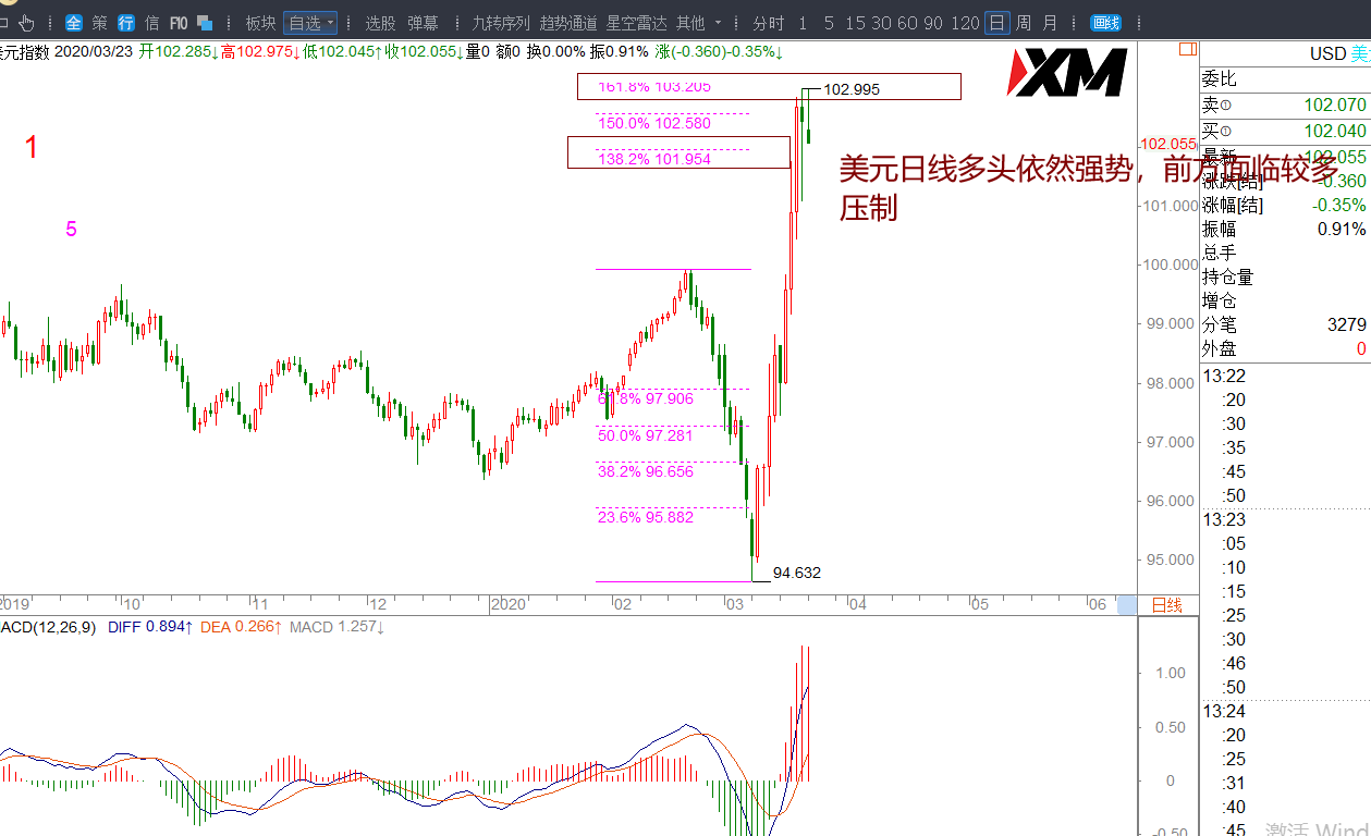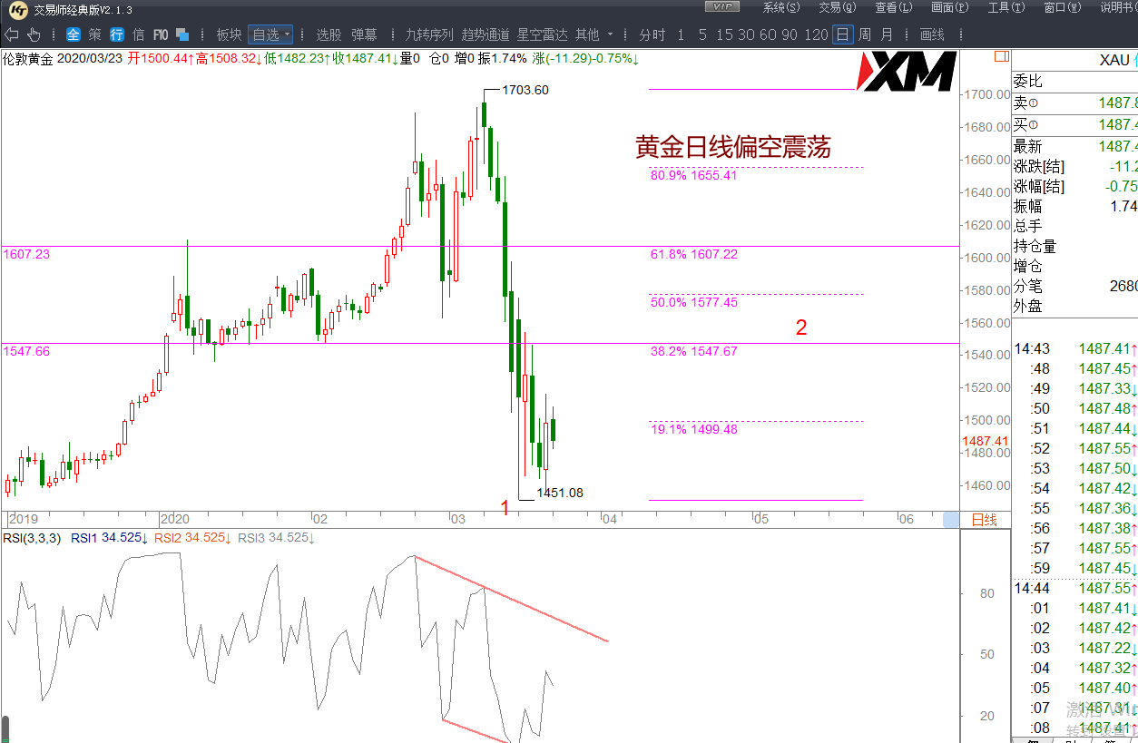 (1)黄金日线以1455为支撑,1470一带不破,回踩上方支撑有多机会,目标1500-1508-1515